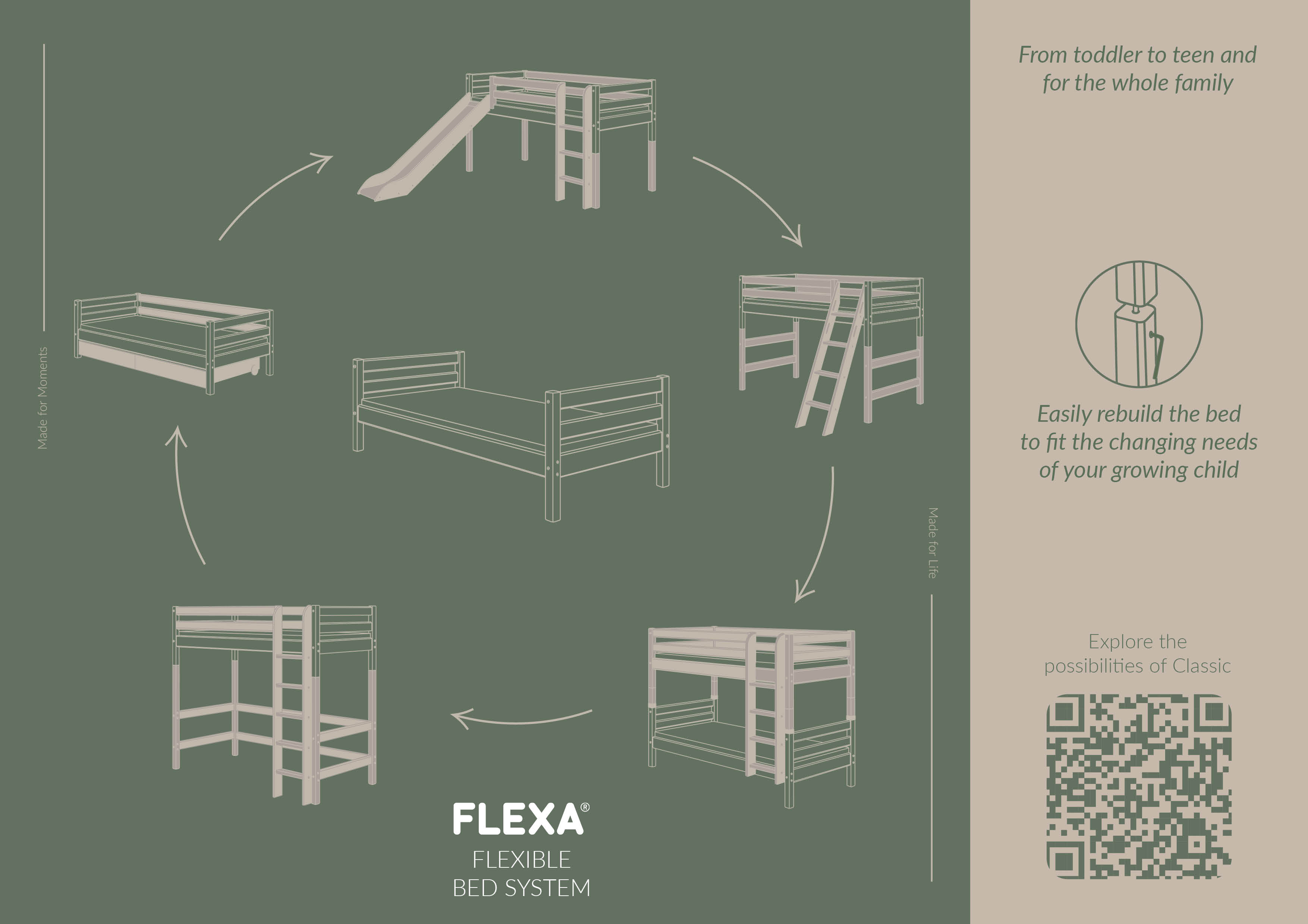 Se vores guide til at ombygge din Classic-seng til forskellige modeller. Vi vokser sammen, og vores Classic-serie kan justeres og ombygges på nye måder, så den passer til dit barns skiftende behov.